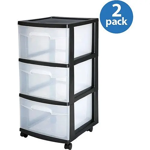Sterilite 3 Drawer Cart- Black, Set of 2