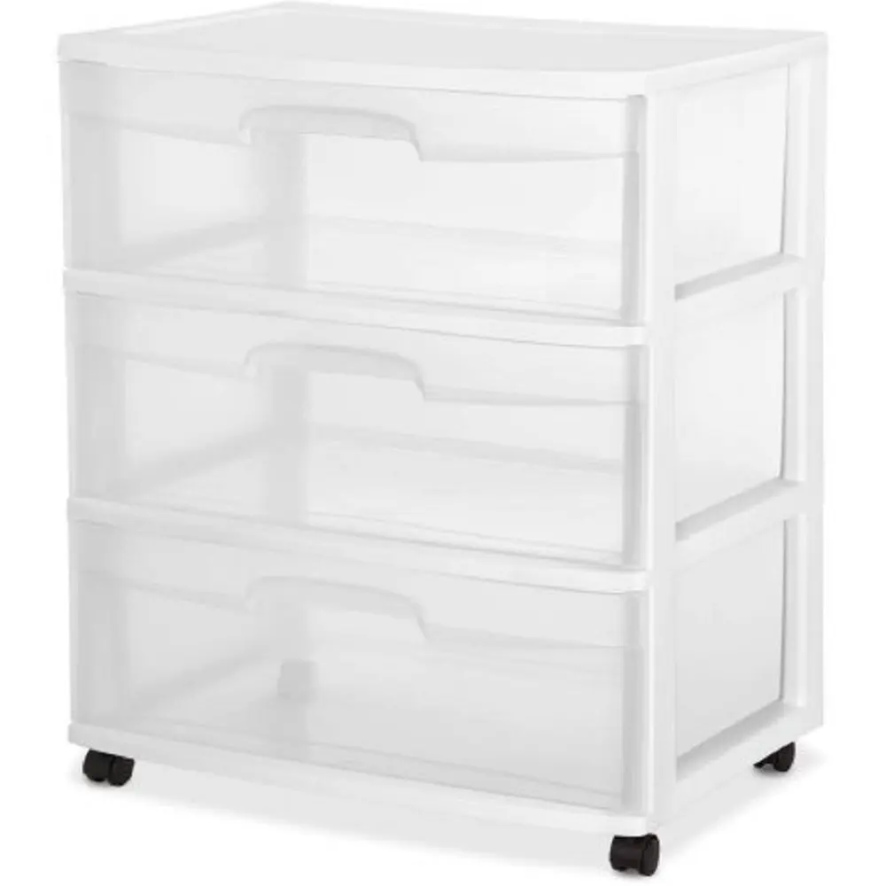 Sterilite Wide Cart 29308001, 3-Drawer, White